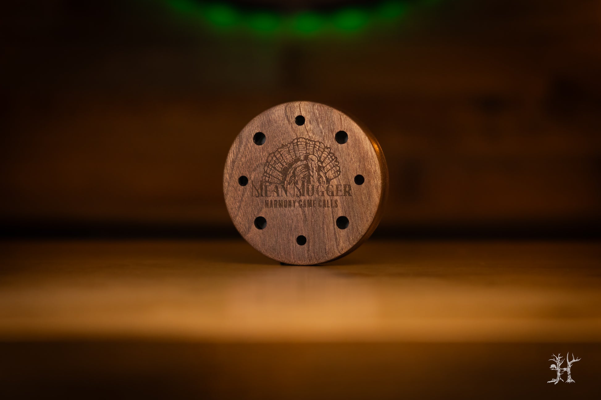 The "Mean Mugger" turkey pot call is as tough as the name. With a green slate playing surface laid into a rugged walnut pot, this call gives you all of the right ingredients for a down and dirty call. We added Ole Mean Mugger on the back to give it a nice feel out of the box. Handmade with meticulous attention to detail, the smooth texture of the green slate produces irresistible purrs, yelps, and clucks, making it an unparalleled tool for seasoned hunters and beginners alike. The magic doesn't stop with the impeccable sound. Nestled within a gorgeously robust walnut pot, this call resonates a rich, earthy tone that mimics the natural symphony of the wild. But the highlight is the backside, adorned with a striking engraving. It's not merely a tool, but also a piece of art that reflects the beauty and rawness of turkey hunting. Invest in this Green Slate & Walnut Turkey Pot Call today to truly enhance your hunting experience while adding a touch of elegance to your kit. Let Harmony Game Calls assist you in having a successful season and stay NTune with Nature!