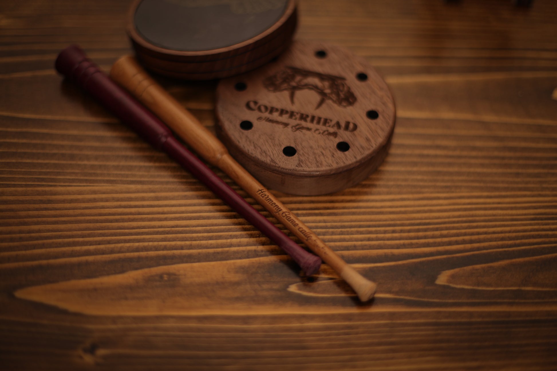 We wanted to offer some Solid Hardwood Strikers with a flared tip. These strikers are premium grade, and are offered as an upgrade to your already great sounding calls. They are offered in Hickory and Purple Heart versions.