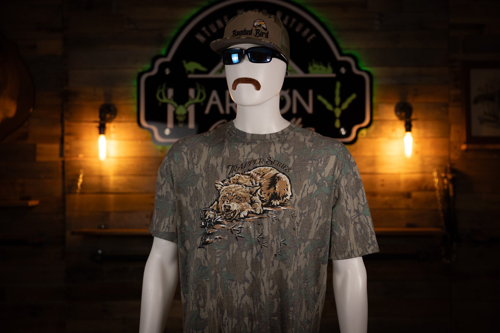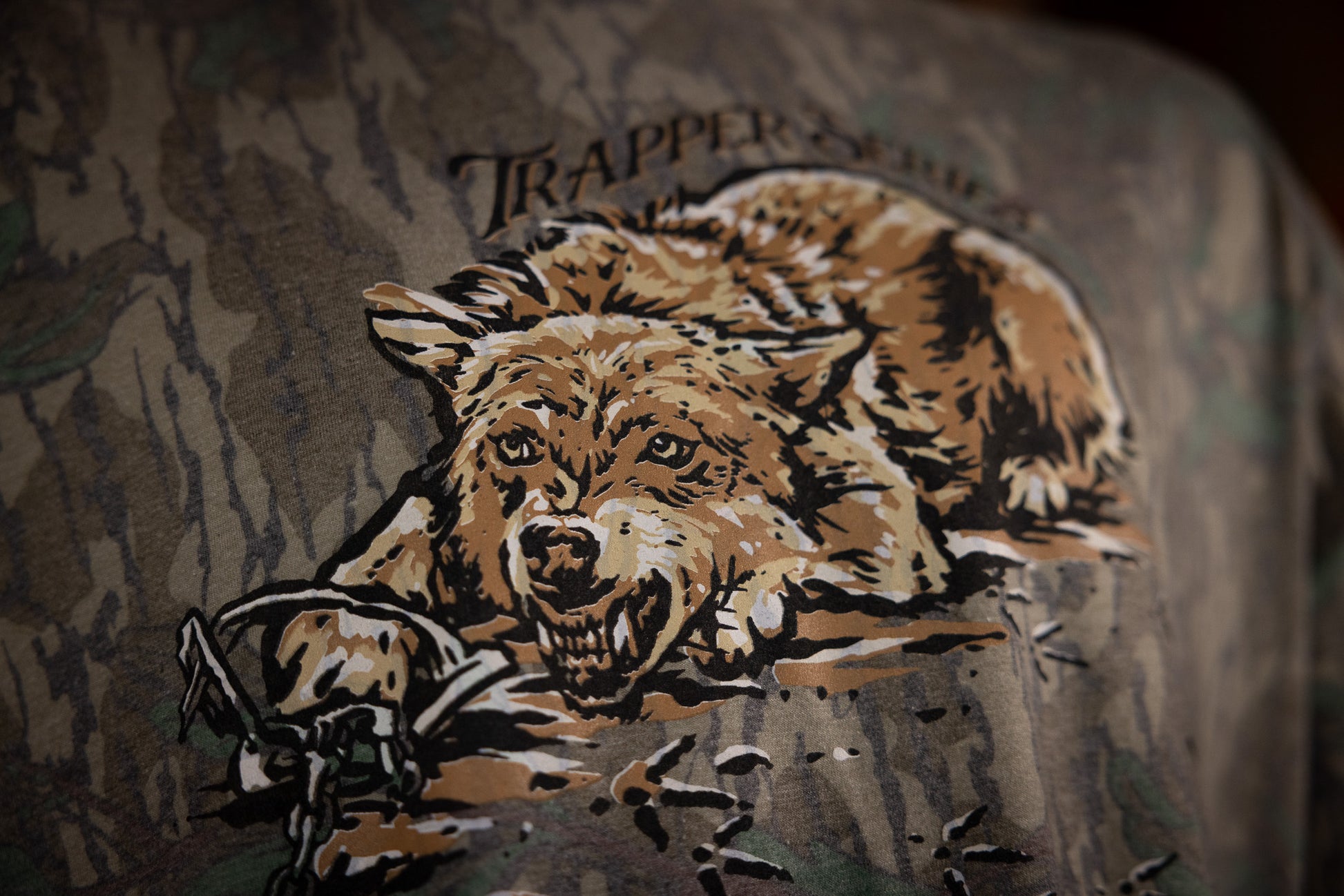 Are you a fan of wildlife conservation and trapping?? Then we have a shirt for you! Grab your Harmony Game Calls Trapper Series Coyote short sleeve t-shirt today. It features a coyote in a foot hold trap on a Mossy Oak Wash Down Greenleaf tee.